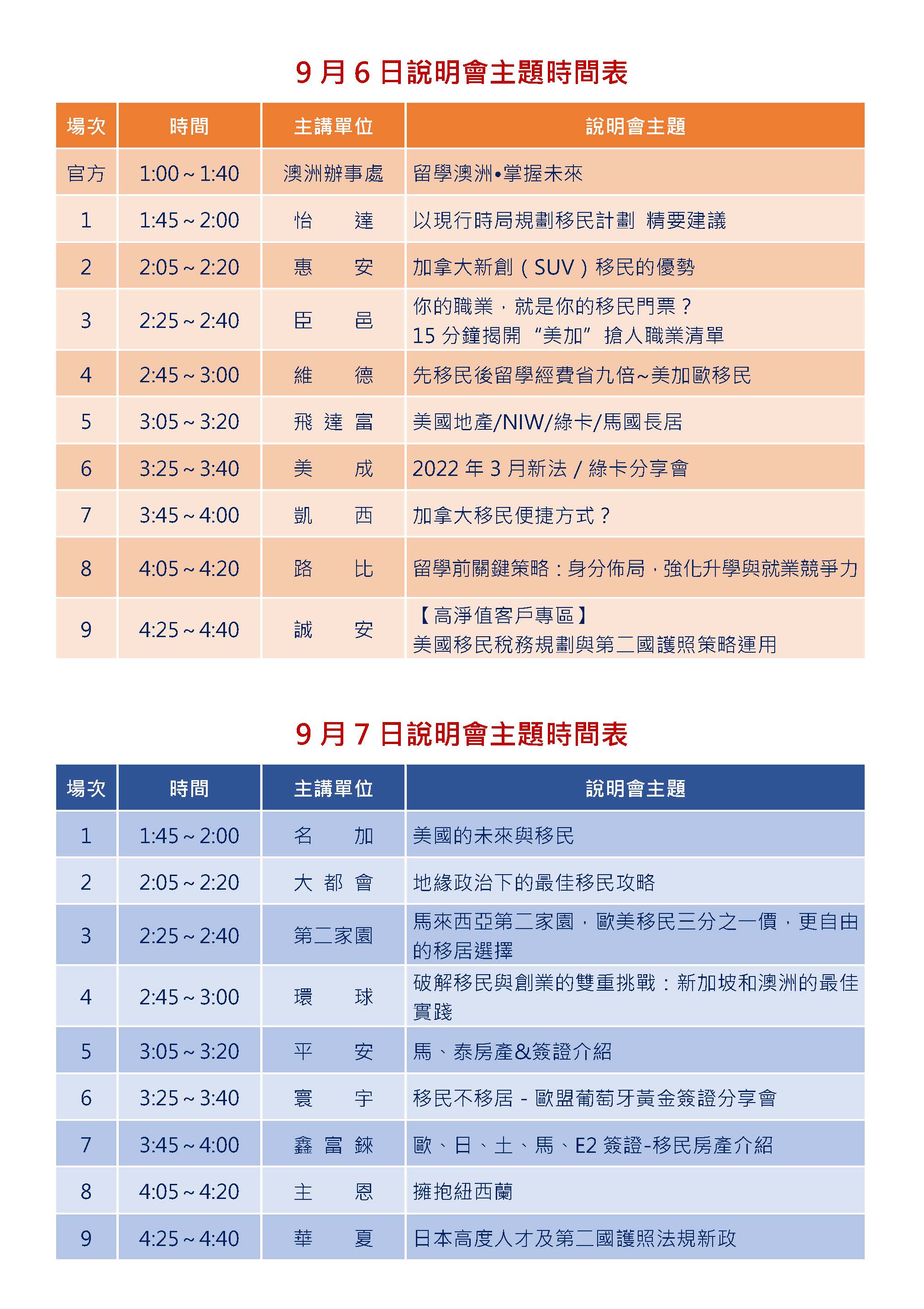 2025AUTUMN移民留學投資展~近20場精彩說明會 等您來聽~