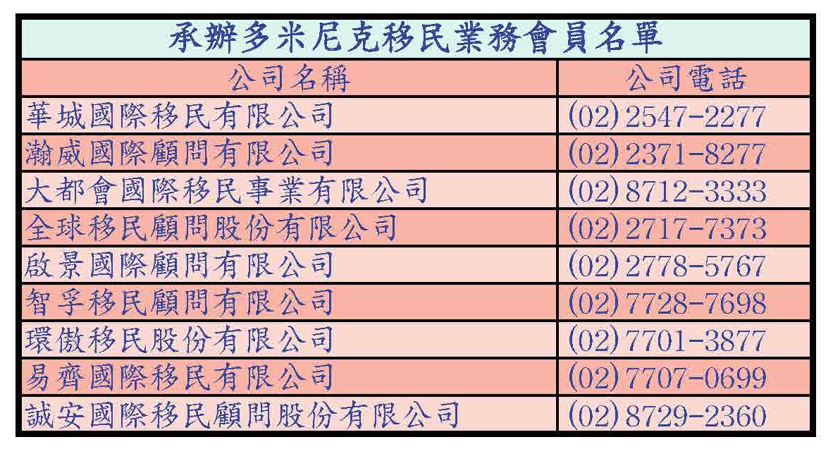 承辦多米尼克移民業務會員名單