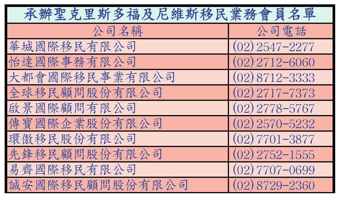 承辦聖克里斯多福及尼維斯移民業務會員名單